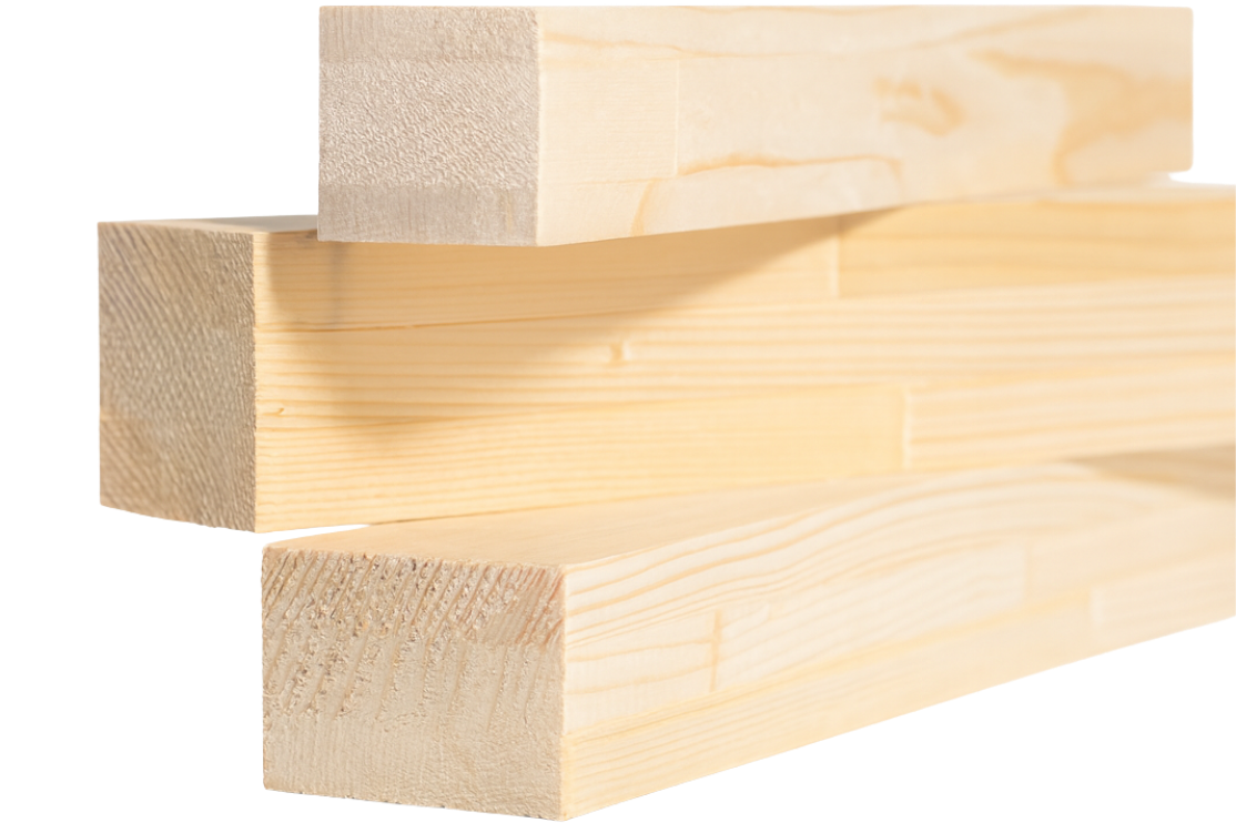 Larch wood is denser, harder, and naturally resistant to moisture, weather, and pests. Due to its stability and long lifespan, larch glulam is ideal for outer layers. Its reddish-brown color gives the final product a refined and natural look.